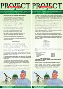 A summary of projects executed across Bakori and Danja Local Government Areas shows investments in road construction, school infrastructure, healthcare delivery and basic utilities, reflecting a growing emphasis by federal lawmakers on constituency projects as a measure of performance.