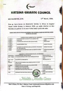 The Katsina Emirate Council has announced the official programme of activities for the 2026 Eid-el-Fitr (Sallah) celebrations, outlining a series of traditional events to be led by the Emir of Katsina.