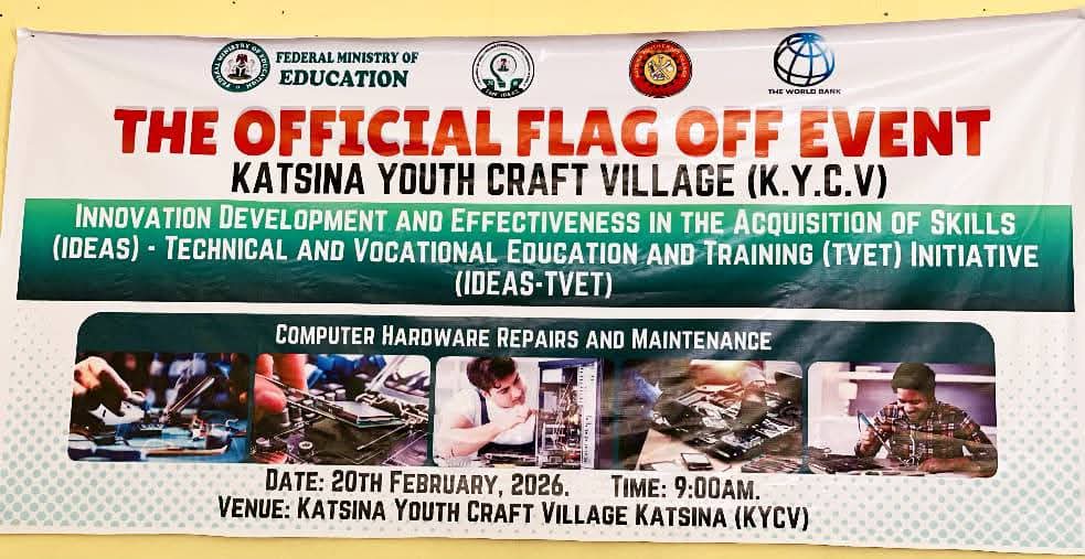 Kofar Soro disclosed this during the flag-off of the Federal Ministry of Education’s TVET Initiative Programme under the World Bank-supported IDEAS Project in Katsina, where federal officials also launched a monitoring and evaluation exercise and commended the state’s commitment to technical education.