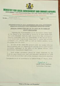 The Katsina State Government has constituted a special committee to address complaints arising from the recent screening of Local Government and Local Government Education Authority (LGEA) staff.