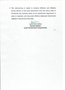 With the restructuring, resident inspectors posted to all local government areas will now report directly to the newly created directorates. Their reports will focus largely on project execution and financial management within the councils, providing a clearer and more consistent flow of information to the state authorities.