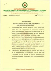 Katsina State is embarking on a significant shift in the way it oversees local government administration, following the approval of a sweeping restructuring of the Local Government Inspectorate Department by Governor Dikko Umaru Radda.